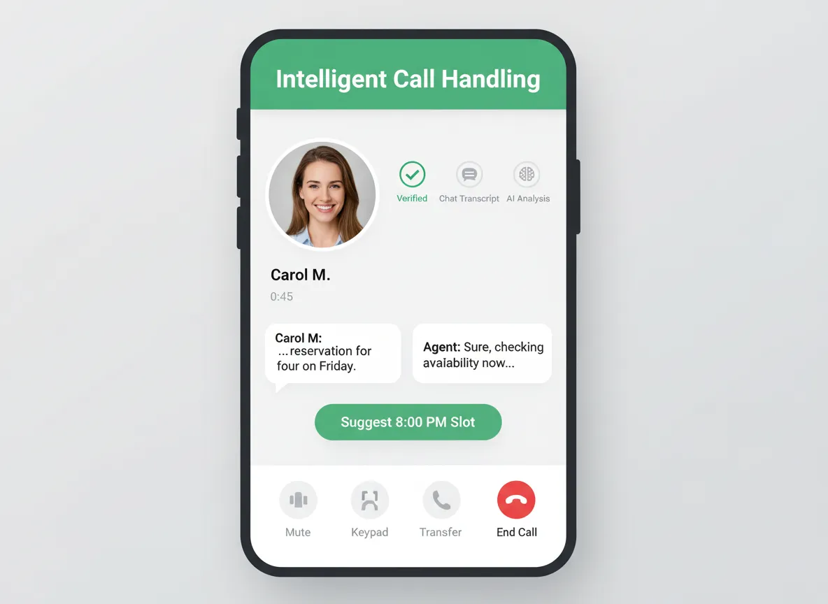 Understands caller intent, asks structured questions, and handles conversations naturally, just like a trained receptionist.