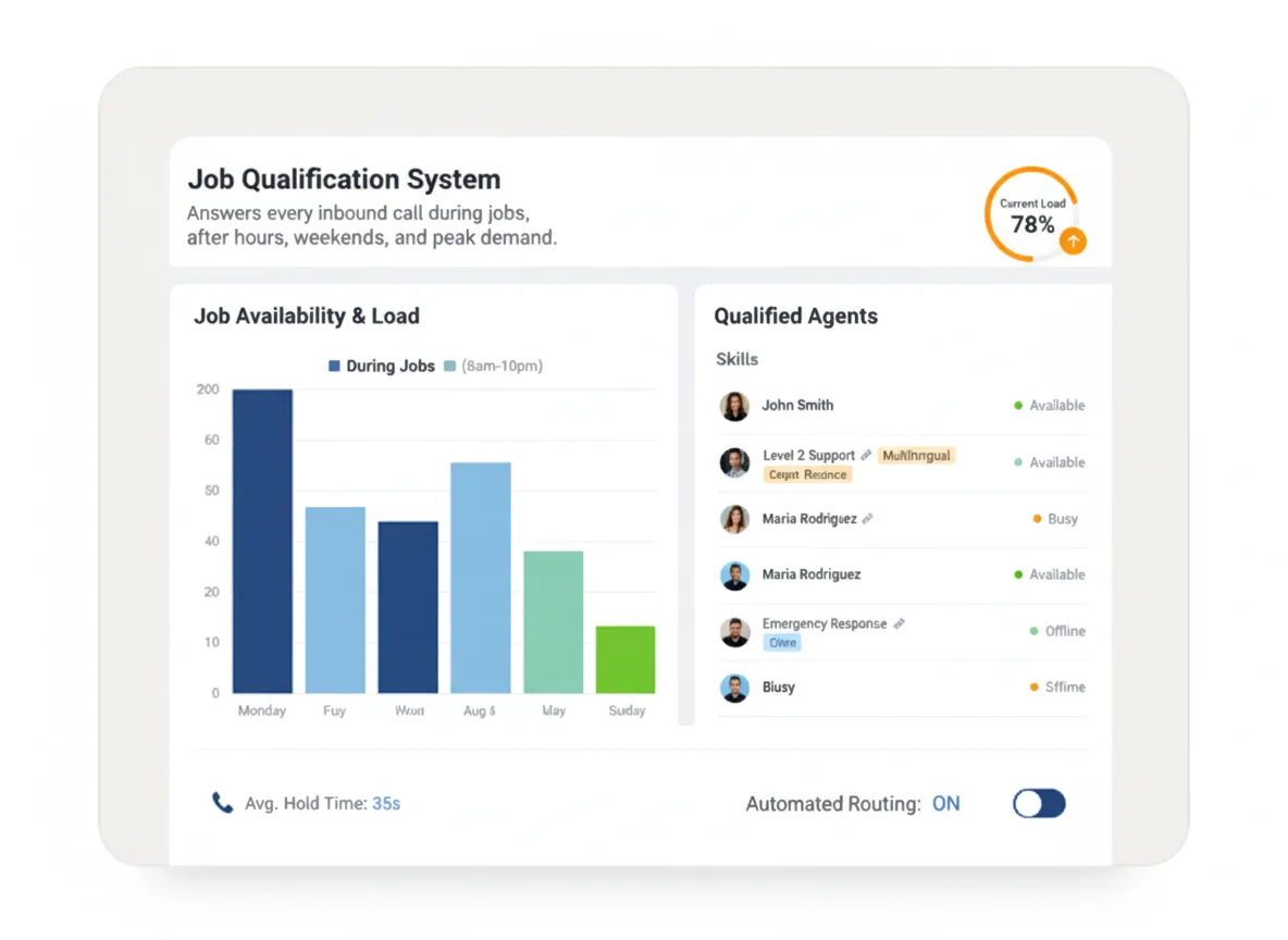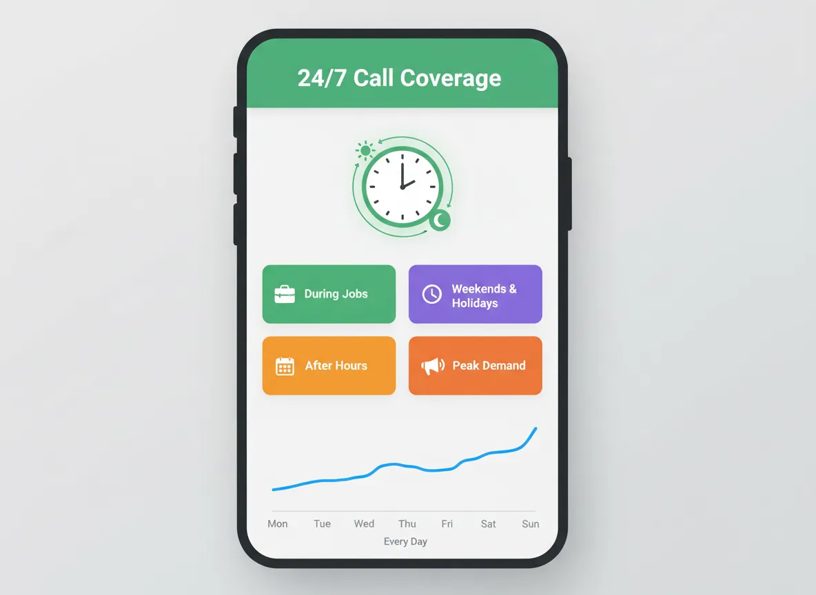Answers every inbound call during jobs, after hours, weekends, and peak demand.