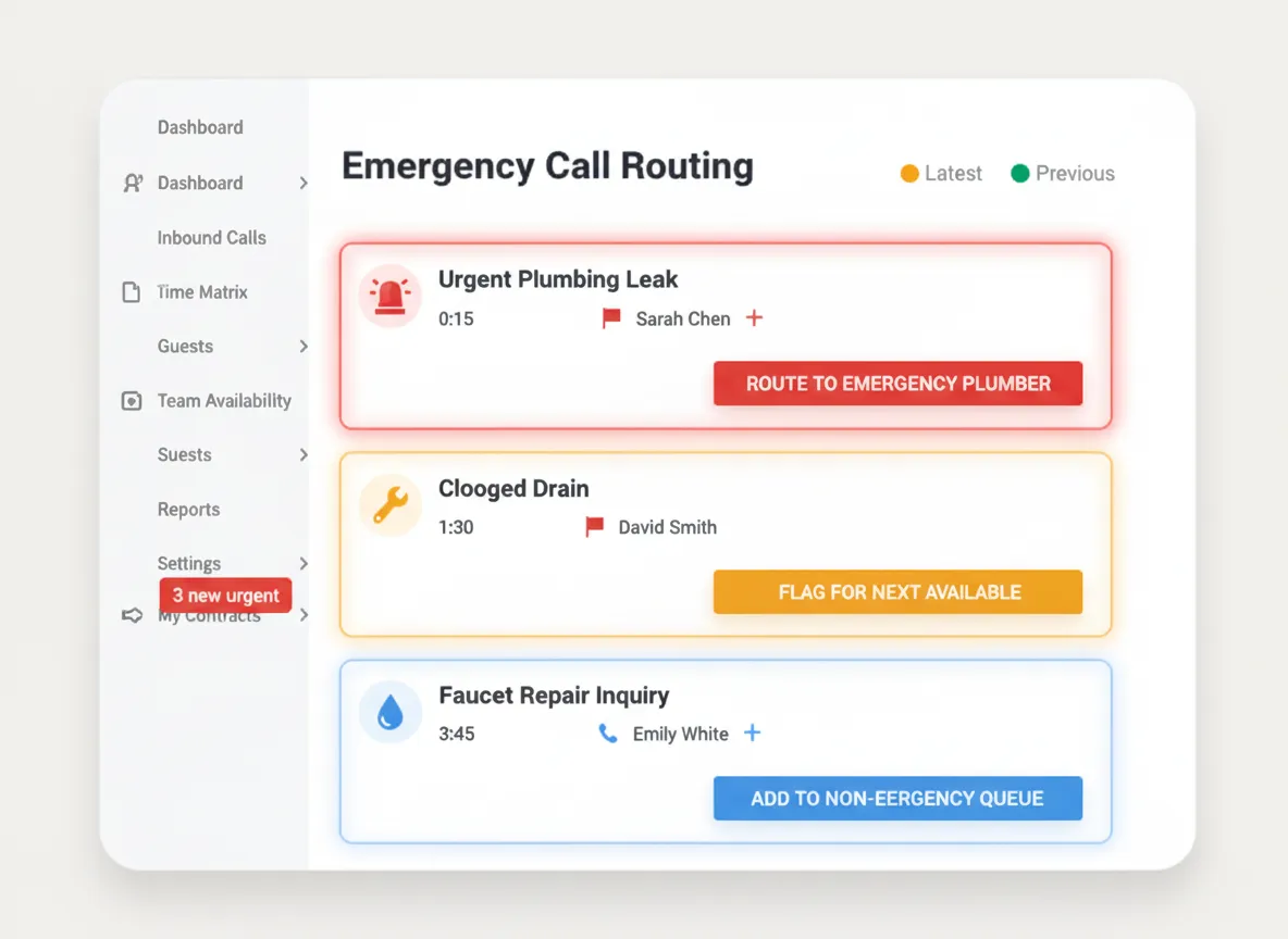 Identifies urgent plumbing issues and prioritizes or flags them immediately.